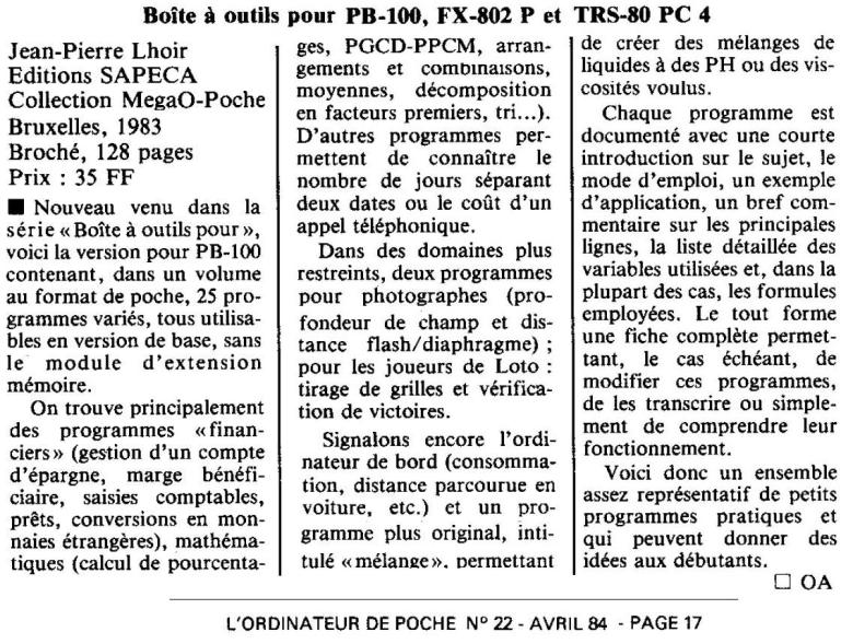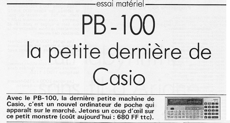 Retrouvez la présentation du PB-100 parue dans l'Ordinateur individuel n°46 (merci à woodstock).