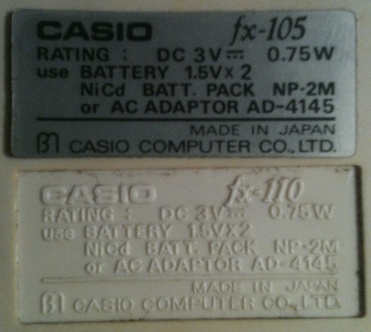 Sous le sticker du fx-105, un marquage de fx-110